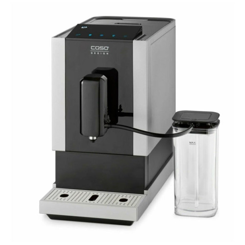 Кофемашина автоматическая CASO Cafe Crema Touch — новое слово в области бытовой электроники, которое раз за разом восторженно повторяют осчастливленные любители бодрящего утра! Теперь вы сможете сделать вкуснейший кофе при помощи минимальных затрат времени, средств и усилий. После покупки вас ожидают инновационные технологии, мощный функционал в компактном корпусе, современный дизайн, комфорт в обслуживании и автоматизм во всём! Преимущества автоматической кофемашины CASO Cafe Crema Touch Кофемашина CASO Cafe Crema Touch имеет небольшие размеры, но может похвастаться объёмным резервуаром для воды объёмом 1,2 литра и вместительной кофемолкой, рассчитанной на 160 граммов зернового кофе. Пусть каждый ваш день будет идеальным — и начинается с кофемашиной Cafe Crema Touch от CASO. Хотите взбодриться, насладившись чашечкой ароматного кофе? На помощь придут широкие возможности настройки и работы многофункционального аппарата. Впечатляющий уровень эргономичности, высокая технологичность, быстрота приготовления напитков, универсальность — всё это в одной устройстве! Технологии Это автоматическое чудо бытовой техники от CASO оснащено конусовидными жерновами, которые позволяют моментально измельчать зёрна. Встроенный пятиступенчатый регулятор обеспечивает качественный помол — ваш напиток всегда будет вкусным и выдержанным по крепости. Благодаря ручному взбивателю сливок вы легко добьётесь идеальной консистенции молочной пены для разных видов кофе. На приготовление одной чашки эспрессо устройство затрачивает всего 30 секунд и 9 граммов кофе! Кофемашина от бренда CASO отличается тем, что она экономична в обслуживании и проста в освоении системы. Машина автоматически отключается после 20 минут нахождения в режиме ожидания. Устройство также может входить в режим энергосбережения и самоочищаться по мере надобности. Встроенные в систему кофемашины Cafe Crema Touch светодиодные индикаторы оповещают пользователя в тех случаях, когда необходимо очистить машину от накипи, досыпать зёрен и закрыть дверцу варочного блока. Технология предварительного смачивания повышает время контакта кофе с водой, что делает вкус напитка более насыщенным. Модель Cafe Crema Touch снабжена яркой подсветкой чаши, чтобы вы могли заваривать кофе в любое время — ночью или ранним утром, когда все ещё спят. Кофейное сопло, которое отвечает за выход жидкости, регулируется по высоте до 16 см: подбирайте размер кофейной чашки под желаемый объём! Как использовать кофемашину CASO Cafe Crema Touch Чтобы подготовить к сборке кофемашину, тщательно промойте её съёмные детали под проточной водой и хорошо просушите — эту процедуру желательно выполнять регулярно. Далее соберите машину по инструкции: установите бункер для жмыха и каплеуловитель с решёткой, наполните свежей водой резервуар и по аналогии поместите её на место. Не забудьте зафиксировать трубку с защитным колпачком