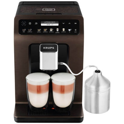 С автоматической кофемашиной KRUPS Evidence Plus вы одним касанием приготовите потрясающий ароматный кофе как настоящий бариста. Благодаря 19 предустановленным и регулируемым программам вы всегда будете получать идеальный напиток из только что смолотых зерен кофе, отвечающий вашему вкусу. Вы также можете выбрать 6 рецептов, которые можно будет запустить нажатием всего одной кнопки. Инновационная и интуитивная широкая цветная сенсорная панель с OLED-дисплеем поможет быстро и легко управлять кофемашиной. Коническая кофемолка из нержавеющей стали эффективно и на высокой скорости измельчает зерна до нужного помола. Уникальная технология KRUPS QUATTRO FORCE сделает привычный домашний кофе произведением искусства.