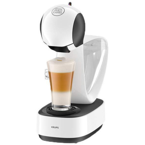 Кофемашина капсульного типа Dolce Gusto Krups – компактная модель, которая поместится даже в самой маленькой кухне или в небольшом офисе. Она очень проста в управлении – для получения тонизирующего напитка нужно вставить капсулу и нажать на кнопку. Через несколько секунд чашка наполнится ароматным кофе. Несмотря на малые размеры, устройство может готовить настоящий итальянский эспрессо с густой устойчивой пенкой. Оно поддерживает стабильное давление в 15 бар, позволяющее раскрывать тончайшие нотки вкуса кофе. Пользователю доступно более 30 рецептов напитков – от классического американо до изысканного латте макиато, от крепкого ристретто до мягкого горячего шоколада. Не нужно тратить время на изучение рецептов и смешивание ингредиентов – достаточно выбрать соответствующую капсулу. Оригинальная форма в виде знака бесконечности делает машину не только красивой, но и практичной – в её баке помещается до 1,2 литра воды, что соответствует 6–12 порциям кофе. Поддон-каплесборник регулируется по высоте, приспосабливаясь к размеру чашек. Благодаря этому ни одна капля напитка не проливается наружу.
