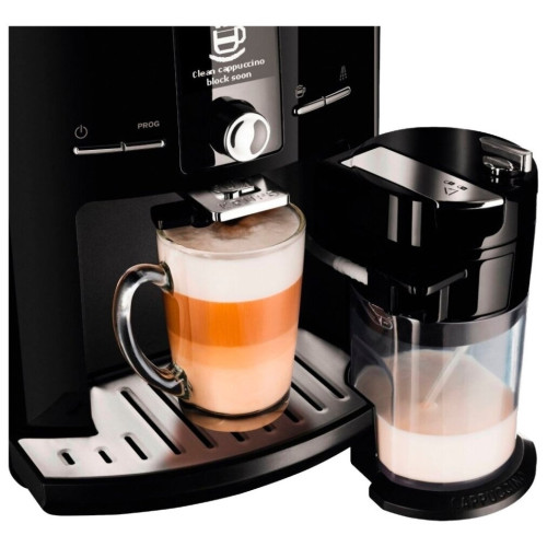 Тип: эспрессо, автоматическое приготовление; Используемый кофе: зерновой; Возможность приготовления капучино: есть, автоматическое приготовление; Максимальное давление: 15 бар; Манометр: нет; Мощность: 1450 Вт; Настройки: контроль крепости кофе, регулировка температуры кофе, регулировка порции горячей воды, предварительное смачивание; Таймер: есть; Тип нагревателя: термоблок; Автоматическая декальцинация: есть; Автоотключение: есть; Объем резервуара для воды: 1.8