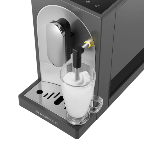 Персональный бариста - всегда под рукой. По-настоящему компактная кофемашина с широким набором возможностей. Приготовление напитков одним касанием с настройкой рецептов по своему вкусу. Управление одним касанием Сенсорная панель с удобной и наглядной индикацией. Все нужные настройки - легким нажатием. Наслаждайтесь не только результатом, но и процессом. Кофемолка В кофемашину встроена кофемолка объемом 160 г. Измельчите зерно непосредственно перед приготовлением напитка – вкус и аромат кофе будет более ярким, богатым и насыщенным. При помощи регулятора вы можете самостоятельно установить необходимую степень помола зерна. Для лучшего раскрытия вкуса кофе светлой обжарки выбирайте мелкий помол, крупный помол больше подойдет для зерен темной обжарки. Давление 19 бар Благодаря мощной помпе при заваривании напитка в кофемашине поддерживается постоянное высокое давление 19 бар. Оно позволяет получить вкусный сбалансированный кофе, по качеству не уступающий напитку из профессиональной кофемашины. Выбор объема порции Вы можете выбрать объем порции и сохранить настройки в память кофемашины вместо заводских, чтобы прибор автоматически заваривал для вас идеальную чашку кофе! Дозатор кофе можно регулировать по высоте , благодаря чему MF-A7021 всегда аккуратно нальет напиток как в маленькую чашку для эспрессо, так и в большую чашку для американо. Кофемашина автоматически включает подсветку рабочей зоны, поэтому контролировать приготовление напитка удобно даже в темном помещении. Приготовление капучино Кофемашина оснащена капучинатором, который позволит быстро взбить молоко в густую однородную пену. Используйте его, чтобы приготовить капучино, латте, раф и другие популярные напитки с добавлением молока. Удобная очистка Удобные программы очистки кофемашины позволяют добиться идеальной чистоты. Это позволяет предотвратить появление известкового налёта и загрязнений, что увеличивает срок службы кофемашины и позволяет поддерживать её в отличном состоянии. Очистка контейнера для кофейного жмыха не требует особых усилий – извлечь его из кофемашины можно одним нажатием. Специальный лоток для сбора капель при необходимости можно легко снять и промыть под проточной водой. Магнитная фиксация подставки для чашек.