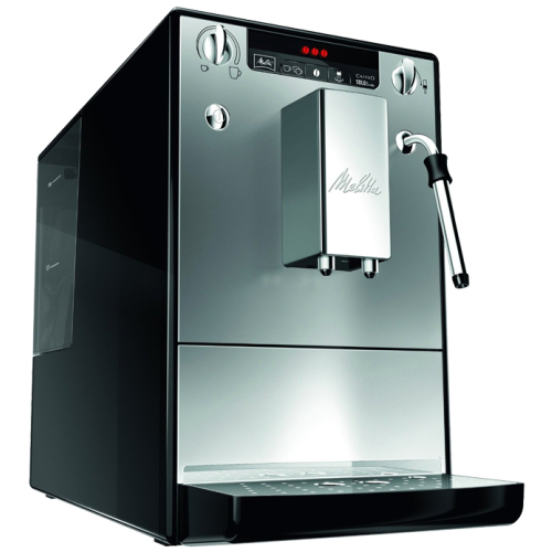 Melitta Caffeo E 953-102 Solo&milk черный/серебристый Технические характеристики Тип: эспрессо, автоматическое приготовление Количество групп: 1 Используемый кофе: зерновой Тип нагревателя: термоблок Мощность: 1400 Вт Объем резервуара для воды: 1.2 л Максимальное давление: 15 бар Манометр: нет Настройки: контроль крепости кофе, регулировка температуры кофе, регулировка порции горячей воды, предварительное смачивание Автоматическая декальцинация: есть Регулировка жесткости воды: есть Возможность приготовления капучино: есть, ручное приготовление Таймер: есть Автоотключение: есть Конструкция Встроенная кофемолка: есть, регулировка степени помола, емкость контейнера для зерен 125 г Противокапельная система: нет Одновременное приготовление двух чашек: есть Дисплей: есть, с подсветкой Подача горячей воды: нет Подогрев чашек: есть Контейнер для отходов: есть Съемный лоток для сбора капель: есть Особенности Материал корпуса: пластик Индикатор уровня воды: есть Индикация включения: есть Размеры (Ш*В*Г): 20x33x46 см Вес: 9 кг Дополнительная информация: регулированный по высоте диспенсер; 3 степени помола; фильтр очистки воды; энергосберегающий режим; автоматическая промывка Бренд: Melitta Модель: Caffeo E 953-102 Solo&milk черный/серебристый