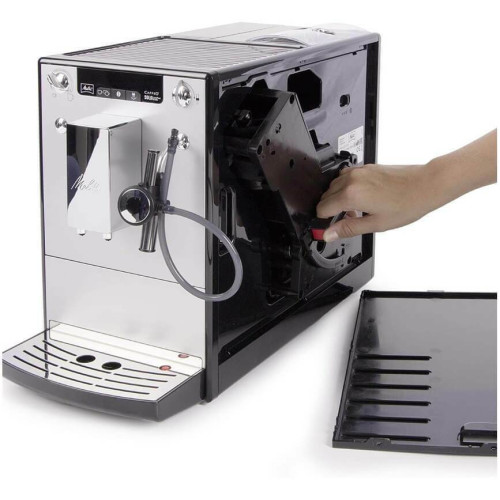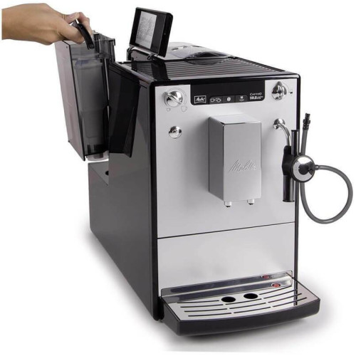 Кофемашина Melitta Caffeo 957-203 в серебристом цвете - это сочетание функциональности и стильного дизайна. Она оснащена автоматической системой управления, что делает ее удобной в использовании. Мощность кофеварки составляет 1400 Вт, что обеспечивает быстрое и качественное приготовление кофе. Максимальное давление составляет 15 бар, что гарантирует насыщенный и ароматный кофе. Кофемашина оснащена термоблоком, который обеспечивает равномерное нагревание воды. Это позволяет получить кофе с оптимальной температурой и вкусом. Кофемашина оборудована 3 степенями помола, что позволяет выбрать наиболее подходящий для вас вариант. Встроенная кофемолка позволяет регулировать степень помола зерен, а контейнер для зерен вмещает до 125 грамм. Кофемашина оснащена функцией автоматического приготовления капучино, что значительно упрощает процесс приготовления этого популярного напитка. Кофемашина оснащена индикатором уровня воды, индикатором включения и подсветкой дисплея. Это делает использование устройства удобным и интуитивно понятным. Кофемашина оборудована противокапельной системой, подогревом чашек, съемным лотком для сбора капель и контейнером для отходов. Это обеспечивает комфорт и чистоту при использовании устройства. Автоматическая кофемашина зерновая предназначена для истинных ценителей кофе. Она снабжена капучинатором, что позволяет готовить великолепный капучино и подавать теплое молоко. Встроенная кофемолка обеспечивает свежий помол зерен при каждом приготовлении напитка. Кофемашина обладает функцией автоматического выключения и энергоэффективным режимом, что делает её идеальным выбором для экономии электроэнергии. Поддон из нержавеющей стали добавляет надежности конструкции и легкость в уходе. Регулируемый по высоте дозатор дает возможность наливать кофе в чашки разной высоты, а наличие дозатора для 2 чашек сокращает время приготовления напитков сразу на двоих