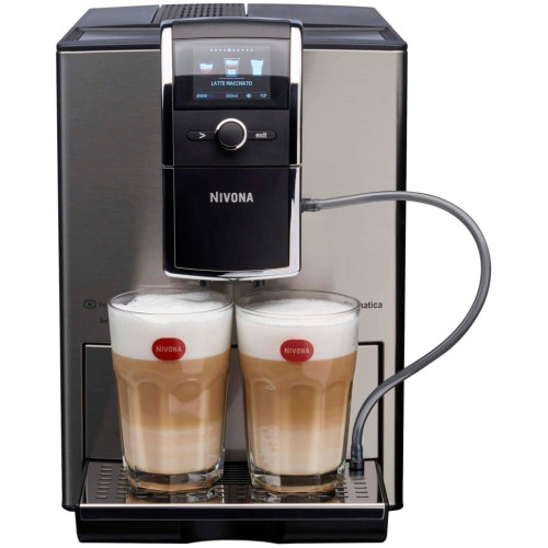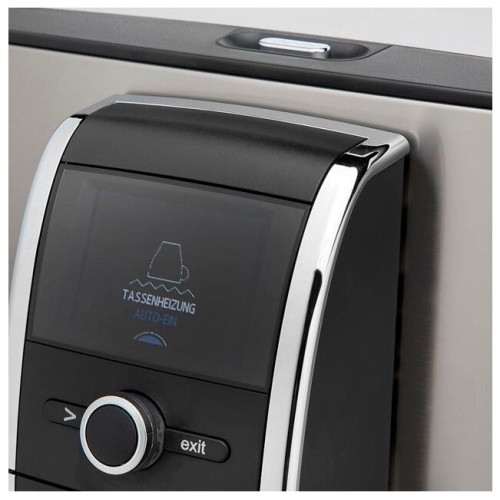 Кофемашина имеет предустановленные программы для очистки, удаления накипи и полоскания, запускаемые одним нажатием кнопки, а взбиватель пены оснащён автоматической системой ополаскивания. Все рецепты можно программировать в реальном времени. Предусмотрена функция статистики и мониторинга необходимости технического обслуживания. Элегантная конструкция из нержавеющей стали с хромированной отделкой дополнена 2-цветной подсветкой чашки для эстетической привлекательности. Подставка с подогревом позволяет долго сохранить напиток горячим. Кофемолка из закалённой стали обеспечивает низкий уровень шума. Степень помола можно настраивать индивидуально. Кофемашина имеет ECO-режим работы и выключается при почти нулевом потреблении энергии. Автоматически контролирует уровень воды и кофейных зёрен. Предусмотрена 3-ступенчатая регулировка температуры и 5-ступенчатая регулировка крепости кофе. Выход для кофе с возможность регулировки по высоте оснащён держателем для молочного шланга. Прибор имеет дополнительный отсек для кофейного порошка, а защитная крышка позволяет сохранить аромат кофе. Предусмотрена система Aromatica с давлением в насосе до 15 бар. Кофемашина оснащена функцией подачи горячей воды, имеет 10 индивидуальных программ My Coffee. Автоматические программы промывки, очистки и удаления накипи, а также регулировка жёсткости воды упрощают процесс эксплуатации прибора. Кофемашина оснащена TFT-дисплеем, индикаторами уровня воды и включения. Задние ролики обеспечивают лёгкость перемещения прибора. В комплект входит фильтр для воды CLARIS, чистящие таблетки, молочный шланг и мерная ложка.