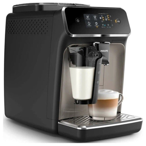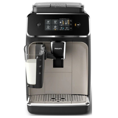 Кофемашина Philips EP2235/403 вкусных вида кофе из свежемолотых зерен – это легко! Готовьте любимый кофе – эспрессо, кофе и капучино – одним нажатием кнопки. Капучинатор LatteGo подарит Вам вкусный кофе с нежнейшей молочной пеной. Он устанавливается и очищается всего за 15 секунд. Капучинатор LatteGo быстро создает нежнейшую молочную пенуНасладитесь кофе с нежнейшей молочной пеной. Капучинатор LatteGo на высокой скорости взбивает молоко в круглой камере, а затем подает нежную пену прямо в чашку без разбрызгивания и при оптимальной температуре. Легко выбирайте любимый кофе с помощью простой сенсорной панели управленияНеповторимый аромат и вкус кофе из свежемолотых зерен за одно касание. Простая сенсорная панель управления позволяет без труда выбирать любимый кофе. Настраивайте интенсивность аромата и объем порции кофе с помощью меню My Coffee ChoiceНастраивайте крепость и объем порции кофе в меню My Coffee Choice. Легко выбирайте нужный параметр из трех доступных опций. Три превосходных вида кофе на выбор – в Вашем распоряженииГотовьте любимый кофе для любых случаев: бодрящий эспрессо, классический кофе или капучино – с помощью полностью автоматической эспрессо-кофемашины Вы быстро и без лишних усилий сварите идеальный кофе. Выбирайте нужный помол с помощью 12-уровневой регулировки положения жерновов.