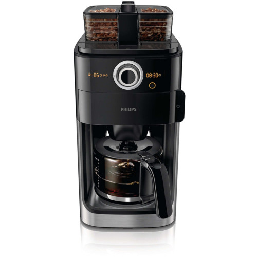 Наслаждайтесь великолепным кофе из свежемолотых зерен с кофемашиной Philips Grind & Brew со встроенной кофемолкой. Уникальный двойной контейнер позволяет переключаться между двумя видами кофейных зерен. Ну а функция таймера позволит вам просыпаться по утрам от аромата свежесваренного кофе. Великолепный вкус кофе раскрывается только при приготовлении напитка из свежемолотых зерен. Эта кофемашина оснащена кофемолкой с коническими жерновами, обеспечивающими идеальную степень помола и безупречный вкус. Двойной контейнер позволяет хранить два вида кофейных зерен. Для приготовления кофе выберите один из видов или оба для создания собственного сочетания. Устанавливайте нужную крепость напитка (мягкий, средний или крепкий кофе).
