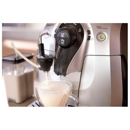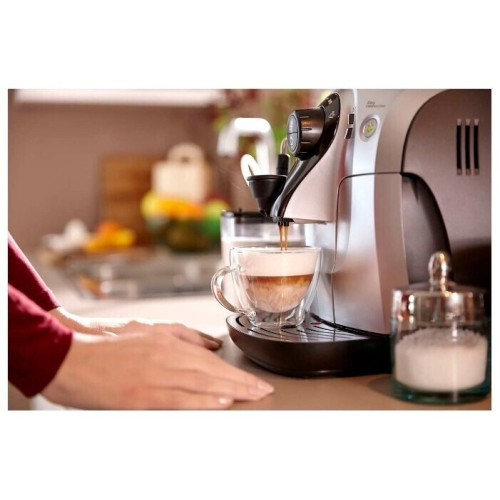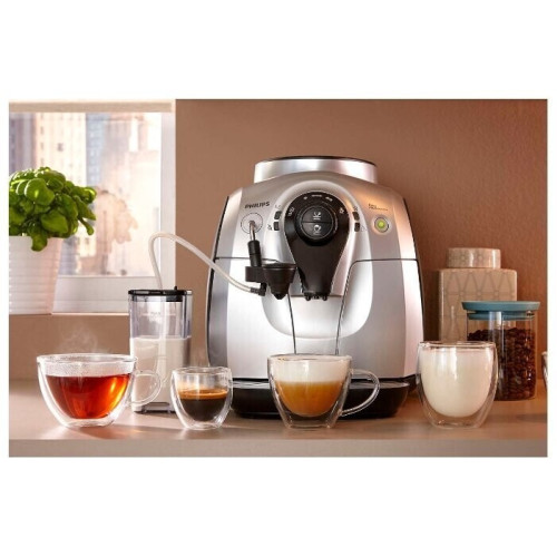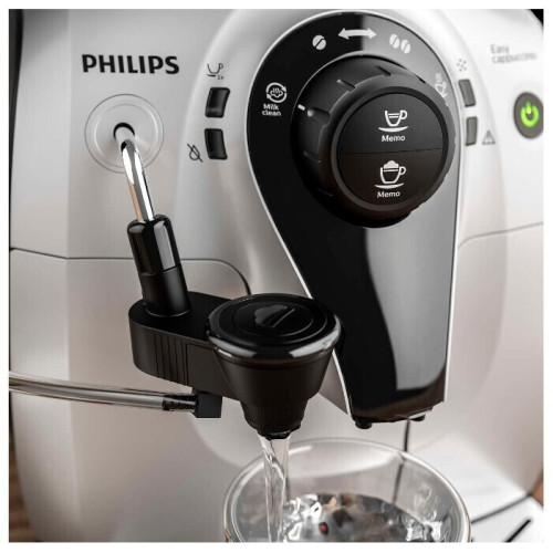 Кофемашина Philips HD8654/59 – компактная модель, которая может устанавливаться в кухне с любой площадью, а также в офисе или в другом помещении. Благодаря применению встроенного капучинатора она позволяет получать три вида напитков одним нажатием на кнопку. АБСОЛЮТНАЯ ЧИСТОТА Устройство автоматически промывает внутренние каналы при включении и перед отключением. Кроме того, в нём предусмотрена функция MILK CLEAN, которая предполагает обработку системы подачи молока паром для уничтожения вредоносных микроорганизмов. ПЕРСОНАЛЬНЫЕ НАСТРОЙКИ Электронная панель управления позволяет регулировать степень помола, температуру и объём воды, создавая свой собственный рецепт кофейного напитка с идеальным вкусом. БЫСТРЫЙ НАГРЕВ Мощный бойлер позволяет подготавливать машину к работе в течение кратчайшего времени. Его применение обеспечивает нагрев кофе до оптимальной температуры уже при приготовлении первой чашки. ПОВЫШЕННАЯ НАДЁЖНОСТЬ Керамические жернова не повреждаются при больших нагрузках или при воздействии влаги. Благодаря этому встроенная кофемолка не нуждается в частом ремонте даже при интенсивном использовании.