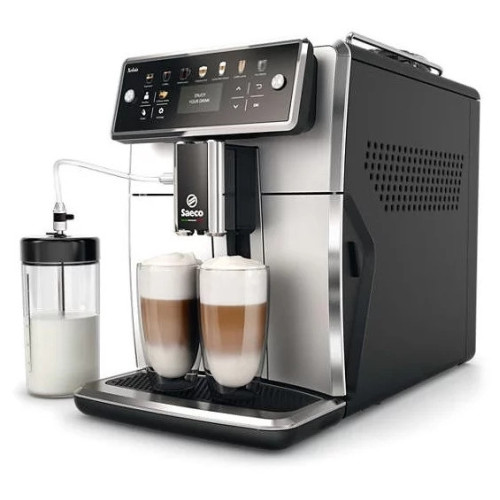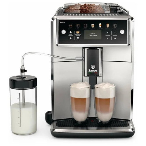 Топовая кофемашина-суперавтомат Saeco Xelsis SM7581/00 стала очередным прорывом в этой линейке премиум-класса. Прежде всего в глаза бросается обновлённый дизайн, особым шиком в котором стала огромная светящаяся сенсорная панель управления с полноцветным дисплеем. Новый автоматический капучинатор тоже наверняка не оставит равнодушными любителей латте. Но самые важные инновации, как обычно, под капотом — их не видно, но они есть. Их работу можно почувствовать во вкусе каждого напитка!Интерфейс Xelsis SM7581/00Панель управления Xelsis SM7581/00 расположена под эргономичным наклоном и занимает всю ширину корпуса кофемашины: светящиеся цветные кнопки большие, иконки интуитивно понятные — справится и ребёнок. Впрочем, экран кнопкам не уступает: графика анимирована, среди языков интерфейса есть английский и русский. 6 профилей пользователей хранят в памяти микрокомпьютера индивидуальные настройки на каждый напиток, что невероятно удобно не только на домашней кухне, но и в кабинете руководителя. В распоряжении юзера выбор объёма кофе, 5 настроек степени крепости, температура, количество молока, опция предварительного смачивания.Водный тракт Saeco Xelsis серии SM 75Новые бойлеры изготовлены из алюминия (для пара) и нержавеющей стали (для воды), что позволяет им еще быстрее нагреваться до нужной температуры и стабильно поддерживать её на одном уровне. Появилась возможность одновременного приготовления не только двух эспрессо, но и двух капучино — благодаря улучшеному рабочему заварочному блоку Saeco Brew Unit, который теперь может варьировать закладку кофе от семи до двенадцати граммов.Молочный контур Saeco SM7581/00Молоко будет стабильной температуры и с глянцевой мелкодисперсной однородной пенкой благодаря новой, запатентованной Saeco системе взбивания молока Latte Perfetto. Точнее говоря, уникальная настраиваемая технология может в зависмости от вашего желания делать не только правильную плотную молочную пену для капучино, можно подстроить её от пышной пены до просто нагретого молока — всё на ваш вкус. В дополнение система HygieSteam очищает молочный тракт паром, от носика до трубок подачи молока, после каждого использования, как это делают профессиональные бариста.Кофемолка Saeco Xelsis SM7581/00Герметизированный бункер обеспечивает свежесть кофейных зерен. Кофемолка с коническими жерновами из керамики может быть сперва вручную грубо подстроена под ваш любимый сорт кофе — 12 ступеней позволяют весьма широкий диапазон помола, а затем интеллектуальная система автоматически точно адаптируется под зёрна. Благодаря шумоизоляции корпуса и мягкой подвески электромоторов работа кофемашины Xelsis практически бесшумна. Кроме зернового кофе можно использовать также и предварительно молотый (например — без кофеина), для чего предусмотрен специальный пульвер в обход кофемолки.