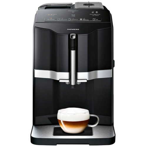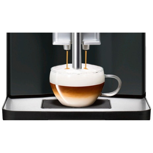 Siemens TI301209RW – стильная и простая в использовании кофемашина для дома или офиса. Небольшие размеры дают возможность устанавливать эту модель на маленьких кухнях и в кабинетах. Она быстро приготовит вам бодрящий эспрессо, латте или капучино с воздушной молочной пеной. Помпа, развивающая давление до 15 бар, способствует полному раскрытию вкуса и аромата.Кофемашина Siemens TI301209RW способна превращать зёрна в порошок, из которого готовится напиток. В нём установлены надёжные и долговечные керамические жернова. Высота дозатора регулируется, благодаря этому под него можно поставить вашу любимую чашку.Пользоваться всеми функциями и настраивать крепость кофе можно с помощью удобно расположенной и хорошо реагирующей на прикосновения сенсорной панели. Важная информация, в том числе выбранный режим работы, выводится на текстовый дисплей. Вы можете настроить таймер, чтобы в заданное время Siemens Siemens TI301209RW выключалась автоматически.