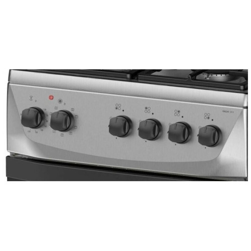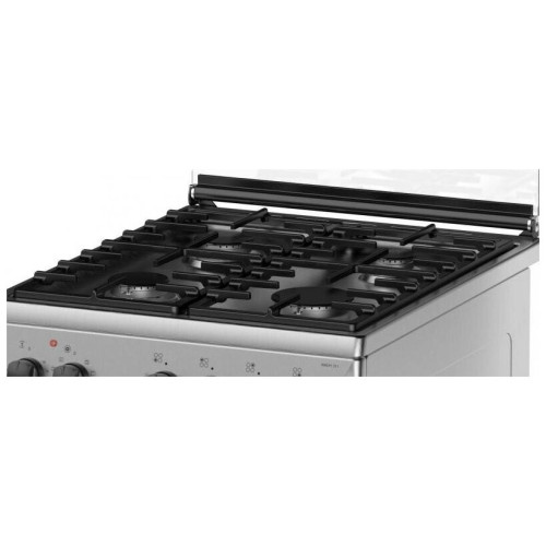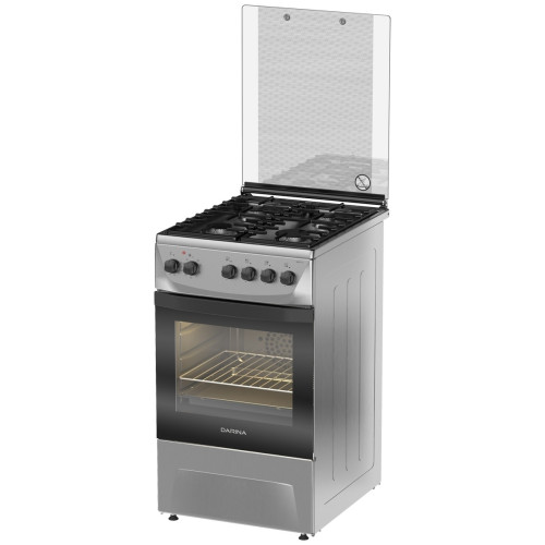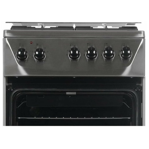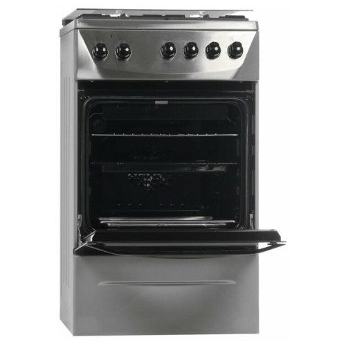 тип: комбинированная, тип духовки: электрическая, тип варочной панели: газовая, материал рабочей поверхности: нерж. сталь, ширина: 50 см, глубина: 60 см, количество конфорок: 4, электроподжиг: варочная поверхность, газ-контроль: Нет, гриль, особенности конструкции: подсветка духовки, ящик для посуды, дополнительные функции: термостат, очистка духовки: традиционная