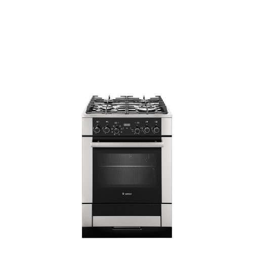 Плита не оснащается крышкой, варочная газовая поверхность - из стекла и надежно защищена от повреждений фигурными чугунными решетками. Четыре газовые конфорки имеют различные размер и мощность, от небольшой и компактной, "под турку", до мощной, двухзонной горелки для быстрого нагрева. Все горелки оснащены газ-контролем, электроподжиг встроен в ручки управления. Предусмотрен и режим экономного горения "малое пламя", для тушения или медленного прогрева. Духовой шкаф с объемом духовки в 55 литров - позволяет загружать продукты в больших объемах, а его функционал облегчает и упрощает готовку. Нагрев - термостатированный, заданная температура будет автоматически поддерживаться, а сенсорный таймер напомнит вам об окончании времени работы. Добавлены гриль и съемный вертел с шашлычницей, есть конвекция для ускоренного нагрева и одновременного приготовления на двух уровнях. Освещение - двухточечное, готовящееся блюдо хорошо видно через стекло.