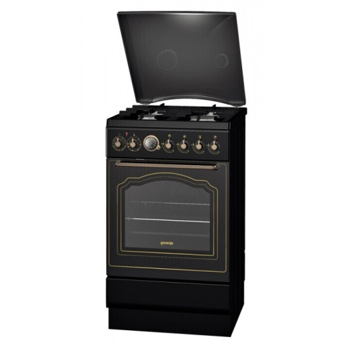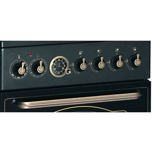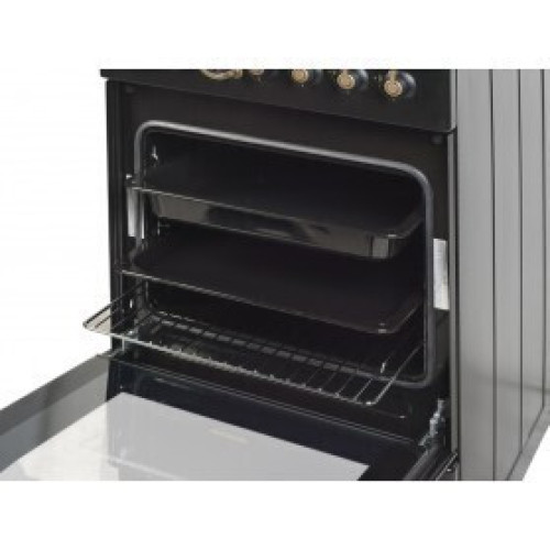 Тип плиты отдельно стоящая. Размеры (ВхШхГ) 85x50x60.5 см. Стиль Retro. Цвет черный. Рабочая поверхность эмаль. Число газовых конфорок 4. Число электрических конфорок 0. Электроподжиг конфорок автоматический. Тип гриля электрический. Газ-контроль конфорок да. Дисплей нет. Таймер да. Тип решеток чугун. Тип таймера звуковой. Тип духовки электрическая. Дверца духовки откидная. Ширина 50 мм. Газ-контроль духовки нет. Объём духовки 48. Электроподжиг духовки нет. Гриль да. Часы да. Термостат да. Конвекция в духовке да. Очиcтка духовки традиционная. Телескопические направляющие нет. Вертел в духовке нет. Подсветка духовки да. Блокировка дверцы духовки нет. Ящик для посуды с выдвижной дверцей. Класс энергопотребления A. Максимальная температура духовки 250 С. Количество стекол дверцы духовки 2. Крышка поверхности металлическая.