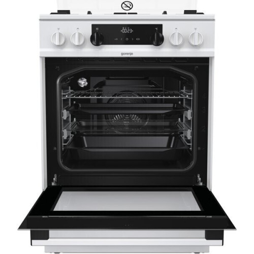 Комбинированная плита Gorenje K6341WA — многофункциональная модель с сенсорным программатором IconLED. Сводчатая форма HomeMade способствует распределению потоков горячего воздуха по всему пространству духового шкафа, обеспечивает равномерное прожаривание и запекание блюд. Телескопические направляющие на двух уровнях удерживают противни. Новая пиролитическая эмаль SilverMatte и очистка паром AquaClean помогают содержать духовку в чистоте.
