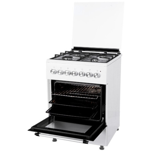 тип: комбинированная, тип духовки: электрическая, тип варочной панели: газовая, материал рабочей поверхности: эмалированная сталь, ширина: 60 см, глубина: 60 см, количество конфорок: 4, электроподжиг: варочная поверхность, газ-контроль: конфорок, конвекция в духовке, гриль, дополнительные функции: термостат