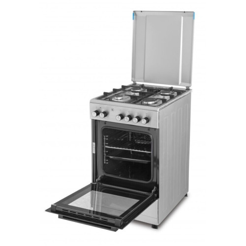 Schaub Lorenz PM 5645H1 - это комбинированная плита с четырьмя  газовыми конфорками и духовкой. Управление плитой осуществляется при помощи поворотных механизмов. Духовой шкаф отличается средней вместительностью для стандартных домашних кухонь. Объем оборудования составляет 45 л. С помощью электроподжига конфорки включаются одним движением. Функционирование духовки осуществляется от электричества, что позволяет более эффективно прогреть внутреннее пространство для качественного запекания продуктов. У плиты есть 5 режимов работы  (нижний и верхний нагревательные элементы, конвекция). В комплектацию входят стандартный противень и хромированная решётка.