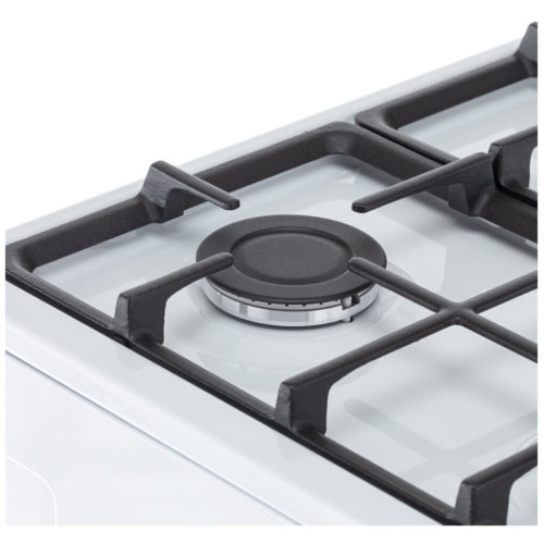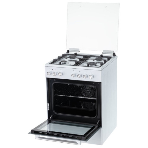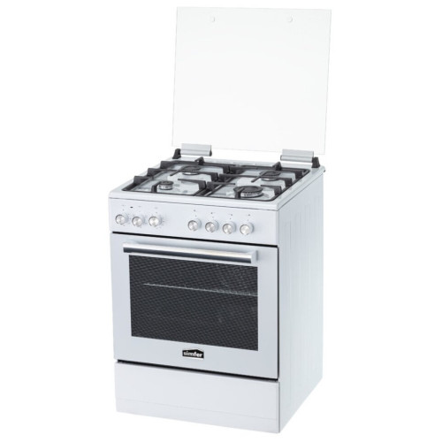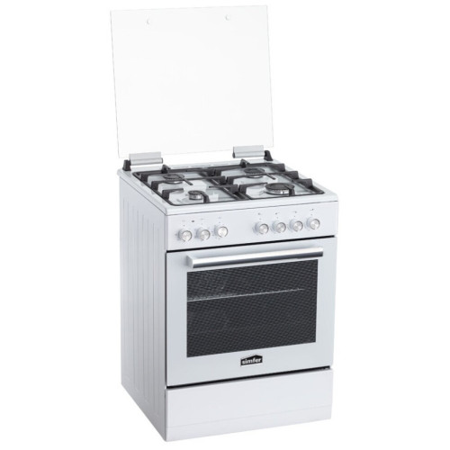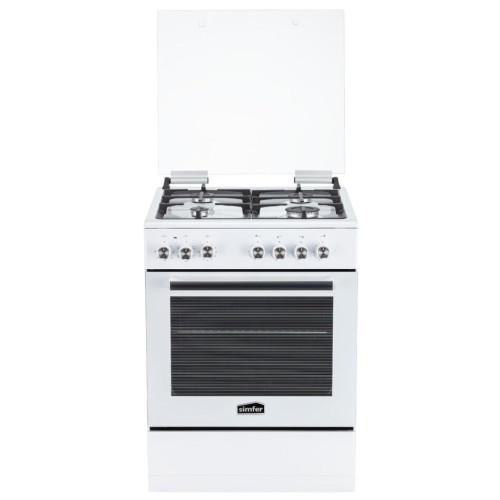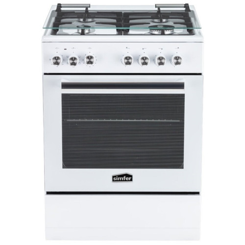 Стильная комбинированная плита Simfer модель F66MW45017 имеет расширенный функционал, для наилучшего результата приготовления пищи можно использовать один из пяти режимов работы . Размеры варочной поверхности 60х60 см, объём духовки 58 л, что позволяет увеличить порции, готовить большие блюда для семьи и гостей. Металлическая поверхность корпуса прибора имеет белую окраску, хромированные поворотные выключатели позволяют регулировать подачу газа и интенсивность нагрева ёмкости с блюдом. Чугунные решётки предотвращают скольжение посуды, удерживают её в нужном положении. Модель оснащена: 4 конфорками разной мощности с электроподжигом; электрической духовкой с подсветкой; дверцей с двойным термостойким стеклом; стеклянной крышкой; выдвижным ящиком для хранения кухонных принадлежностей. Наличие экономичной конфорки позволяет готовить блюдо на среднем огне без перерасхода энергии, а для высокотемпературного режима можно использовать конфорку повышенной мощности. Функция газ контроль способствует безопасному использованию плиты, при случайном затухании пламени горелки в аварийных ситуациях останавливается подача газа. Плита не требует сложного ухода, обработку поверхности можно проводить неабразивными средствами. Эмаль лёгкой очистки позволит быстро снять нагар и накопившиеся загрязнения. В комплект к плите прилагается эмалированный противень и хромированная решётка, имеется шнур для подключения прибора.