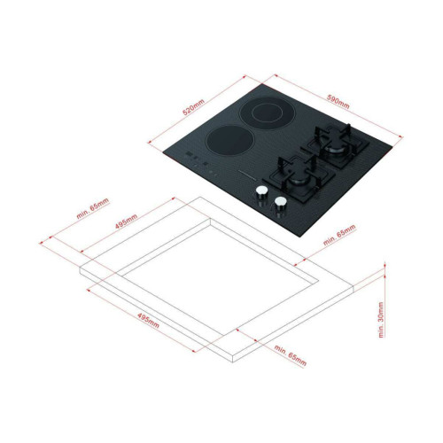 Комбинированная варочная панель Kuppersberg EGS 600 Особенности: Категория: Варочная панель Тип панели: Газовая и электрическая панель Коллекция: High-Tech Тип нагрева: Hi-Light/Газ Тип установки: Встраиваемая Управление: Слайдер/механическое управление Количество цифровых дисплеев: 3 Количество уровней мощности: 9 Стеклокерамика: KANGER Функция поддержания тепла Блокировка панели управления Индикаторы остаточного тепла Таймер Stop and Go Автоматическое отключение Мощность зон нагрева: Зоны нагрева: Hi