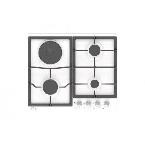 Независимая встраиваемая газовая панель Oasis P-MWK31 черного цвета оснащена тремя газовыми конфорками и блиновой конфоркой. На корпусе находится панель с механическим управлением — регуляторы оформлены в черном цветовом решении. Варочная поверхность изготовлена из закаленного стекла и дополнена решеткой из чугуна. Ширина и глубина составляют 58х51 см при весе 10,2 кг. Модель получила жиклеры и штуцер для газового баллона, а также газконтроль каждой конфорки.