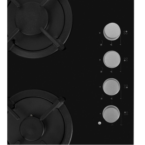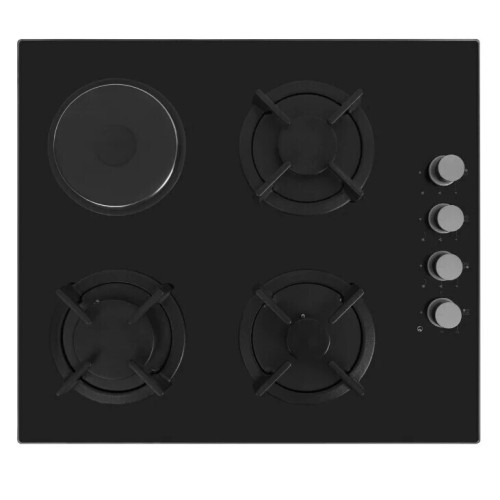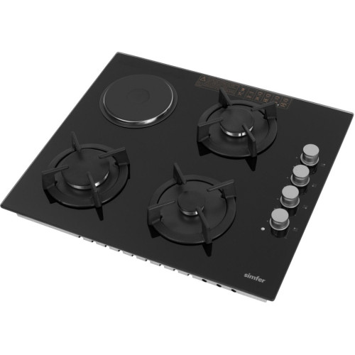 Комбинированная варочная поверхность Simfer H60K32B511 цвет - черный, закаленное стекло. Серебристые хромированные ручки, 3 газовые конфорки, 1 электрическая чугунная конфорка (145 мм).