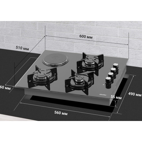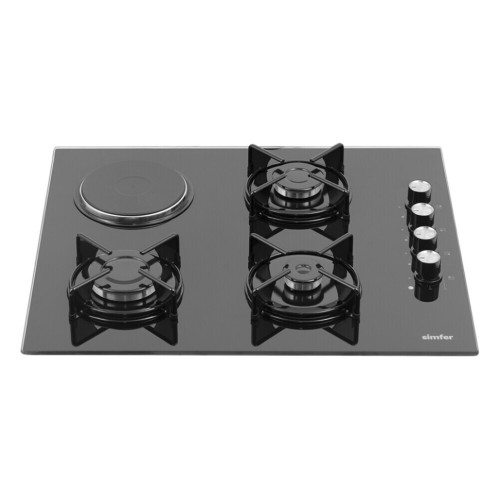 Комбинированная варочная панель Simfer, оснащенная тремя газовыми и одной электрической конфорками - настоящая находка для любящих эксперименты людей, так как комбинирование источников тепла предоставляет довольно обширные возможности для всех хозяек, которые вынуждены или любят много готовить. Благодаря небольшим размерам и лаконичному дизайну эта модель впишется в интерьер любой кухни. Материал рабочей поверхности - жаростойкое закаленное стекло, которое имеет красивый зеркальный вид.Управление варочной панелью осуществляется посредством четырёх поворотных переключателей, в которые встроен электроподжиг, значительно упрощающий работу с панелью. Мощность конфорок: * 1 х конфорка повышенной мощности 3000 Вт. * 1 х стандартная конфорка 1750 Вт. * 1 х конфорка малая 1000 Вт * 1 x электрическая конфорка 1500 Вт. Материал решеток - эмалированная сталь. Дополнительным достоинством варочной поверхности является наличие функции газ-контроль конфорок, отключающей подачу газа при затухании пламени. Комбинированная варочная панель Simfer стильный и функциональный прибор, который поможет вам готовить самые разнообразные блюда!
