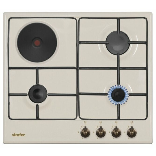 Комбинированная варочная панель Simfer H60V31O511 оснащена 3 газовыми и одной электрической конфорками. Благодаря небольшим размерам и лаконичному дизайну эта модель впишется в интерьер любой кухни.