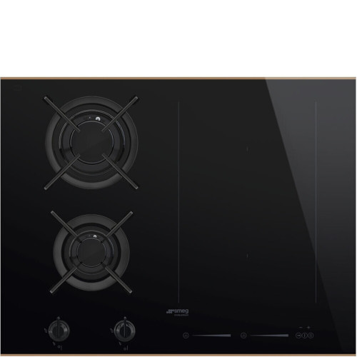 Smeg PM6621WLDR — стеклокерамическая варочная панель с индукционной зоной Multizone и двумя газовыми конфорками. Для управления мощностью нагрева доступны сенсорные слайдеры и кнопки с возможностью блокировки от случайного нажатия, а также эргономичные поворотные переключатели. Модель укомплектована скребком для очистки рабочей поверхности. Возможность встраивания значительно сэкономит кухонное пространство, а классический дизайн станет украшением интерьера. Комплектация: * Скребок Эстетика и управление: * Управление Touch control (слайдер) + поворотные переключатели * Профиль медный * Чугунные решетки * Прямой край Функции: * 2 газовые зоны нагрева + 2 индукционные зоны нагрева * 9 регулируемых уровней мощности * Функция поддержания температуры * Функция автоматического поддержания кипячения * Функция плавления / приготовления при низкой температуре * Функция «Пауза» * 2 таймера окончания приготовления с акустическим сигналом * Режим Showroom * Индикация времени приготовления * Индикация остаточного тепла Безопасность: * Автоматическое выключение при перегреве (для индукции) * Автоматическое выключение при проливании (для индукции) * Блокировка управления от детей (для индукции) Дополнительные характеристики: * Мощность конфорки: * Задняя левая: 3,1 кВт * Передняя левая: 1,1 кВт * Правая Multizone: 2,1 + 2,1 кВт (Booster 3,6) * Размер индукционной конфорки: 460х180 мм
