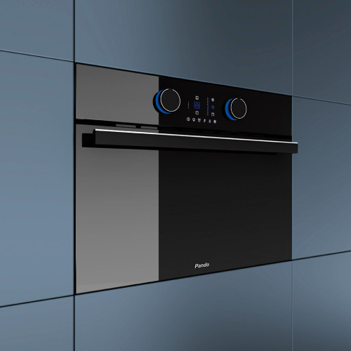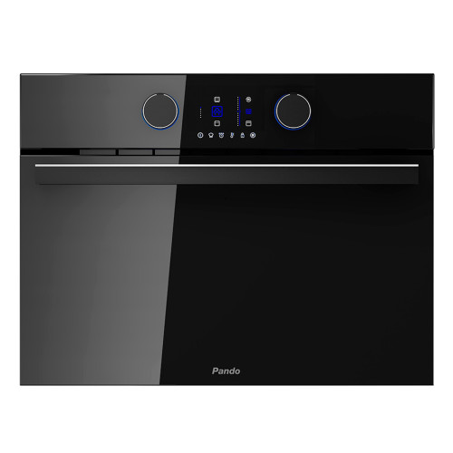 - Pando Chef — встроенная кулинарная книга: 20 автоматических программ для популярных блюд. Достаточно выбрать рецепт — духовка сама установит нужную температуру, время и режим (с паром или без).