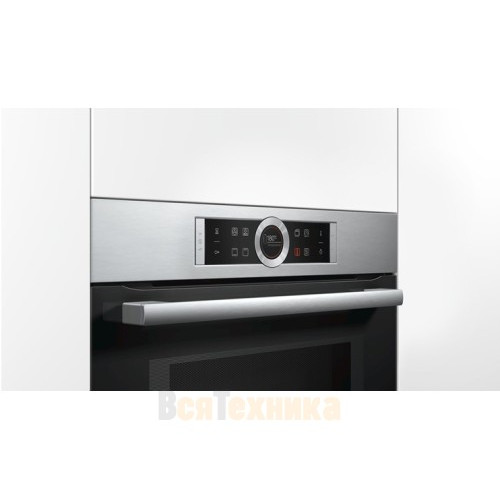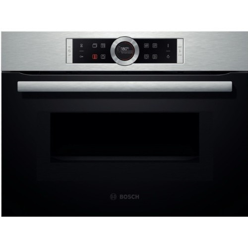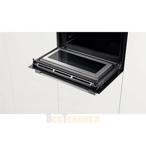 Духовой шкаф Bosch CMG633BS1 из компактной серии предназначен для встраивания. Ниша или шкаф должны иметь габариты 45-45.5×56-56.8×55 см (В х Ш х Г).