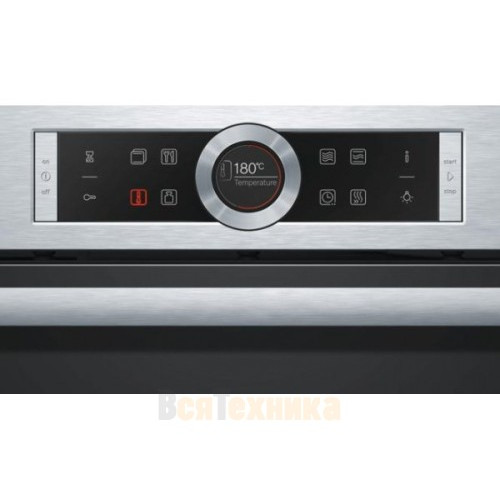 В комплектацию Бош CMG633BS1 входят решетка и универсальный противень, телескопические направляющие (не на всех уровнях). Чтобы приготовить мясо большим куском на решетке, противень нужно оставить на уровень ниже.