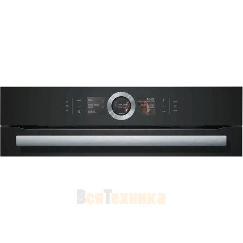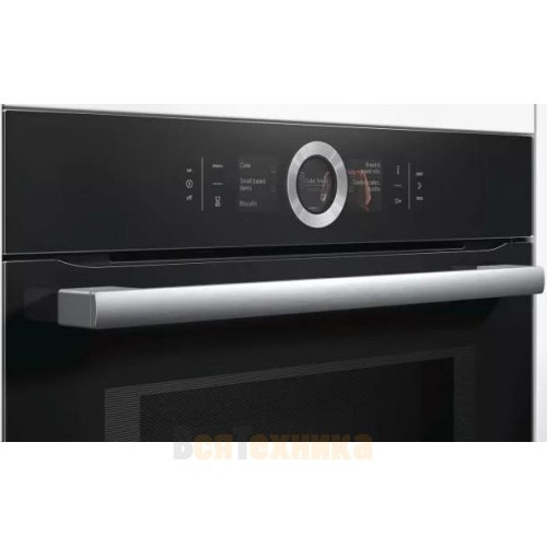 Встраиваемый духовой шкаф Bosch CMG676BB1 модель премиум класса с микроволнами. Компактный прибор имеет 12 режимов нагрева и внутреннее светодиодное освещение. Покрытие EcoClean задней стенки делает чистку духовки легкой и быстрой. Меню DishAssist предлагает широкий выбор блюд. На цветном TFT-дисплее с сенсорным управлением отображается оптимальный режим нагрева, время приготовления и температура, которые гарантируют хороший результат. Благодаря амортизатору SoftMove, дверь закрывается бесшумно. Трехслойное остекление обеспечивает безопасность и предохраняет от ожогов.