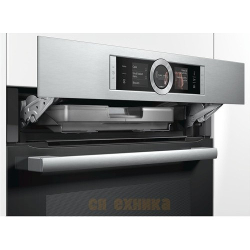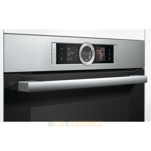 Компактный духовой шкаф Bosch CSG656BS2 из 8 серии управляется при помощи сенсорного дисплея и переключателя Control Ring. Удобное анимационное меню Assist обеспечивает быстрый доступ к режимам и функциям, а также автоматически подбирает оптимальную температуру и время приготовления для различных блюд.