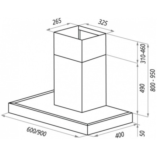 Каминная вытяжка Ciarko Quatro Black Slim 90 Конструкция Т-образная, монтаж: настенный, ширина: 90 см, управление: сенсорное, производительность мотора: 1100 м³/ч, цвет: нержавеющая сталь/черный.