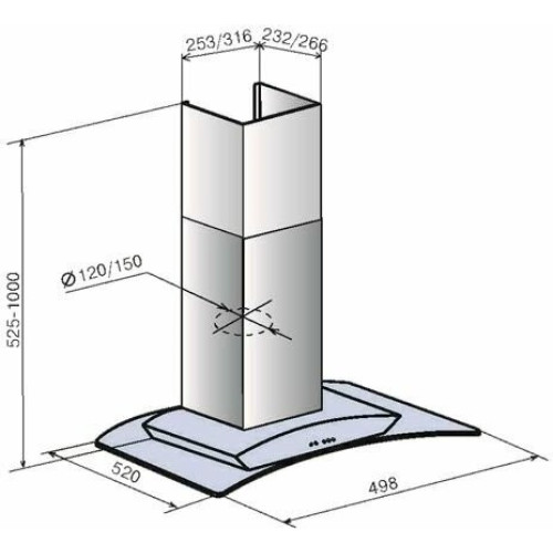 Описание: монтируется к стене, Макс. производительность 430 куб. м/ч, мощность 225 Вт, тихий двигатель, немаркая поверхность; Тип: Вытяжка каминная; Место встраивания: настенная; Наклонная вытяжка: нет; Режим работы: отвод, циркуляция; Тип управления: механическое; Элементы управления: кнопочное; Фильтр: жировой; Тип освещения: галогенная лампа; Количество ламп: 2; Количество двигателей: 1; Количество скоростей: 3; Максимальный уровень шума: 54 дБ; Материал корпуса: металл, стекло; Цвет корпуса: серебристый; Дополнительные возможности: антивозвратный клапан; Ширина: 50 см; Глубина: 52 см; Высота: 100 см; Вес: 14,1