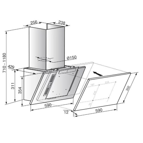 * каминная вытяжка * наклонная * монтируется к стене * отвод / циркуляция * Макс. производительность 700 куб. м/ч * ширина для установки 60 см * мощность 225 Вт * мощность двигателя 185 Вт * электронное управление * тихий двигатель