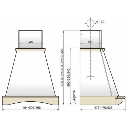 Артикул: 124-452 Каминная вытяжка Elikor Ротонда 650 60 бежевый/дуб белый с патиной Де Капе Вытяжка каминного типа