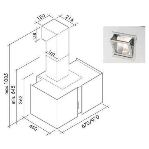 Кухонная вытяжка для настенного монтажа. Корпус оснащен внутренней подсветкой. Датчик освещения. Галогеновые лампы