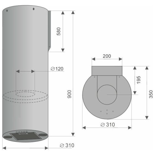 форм-фактор: цилиндрическая, ширина: 31 см, глубина: 31 см, режимы работы: отвод / циркуляция, место встраивания: Пристенная, максимальная производительность: 800 м?/час, тип установки: пристенная, фильтр: жировой + угольный, тип управления: электронное, тип освещения: светодиодное, максимальный уровень шума: 56 дБ, диаметр патрубка воздуховода: 120 мм, мощность двигателя: 185 Вт, потребляемая мощность: 185 Вт, дополнительные функции: регулировка яркости освещения, особенности конструкции: антивозвратный клапан