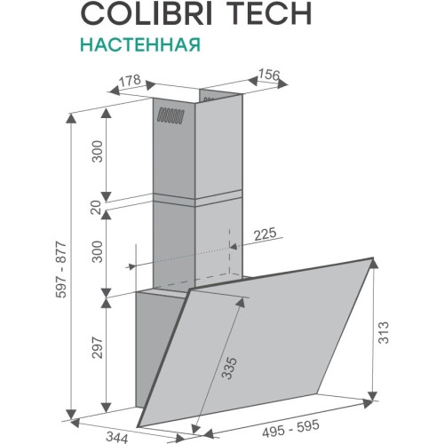 Мощный мотор с производительностью 650 куб. м. \nФасад из закаленного стекла Schott. \nЯркое энергоэффективное LED освещение (2 х 1Вт). \nСенсорное управление. \nМаксимальный уровень шума — 59 Дб
