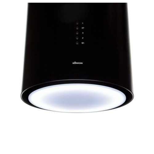 KÖNIGIN ENSO - цилиндрическая форма вытяжки в сочетании с уникальной декоративной Led панелью - эстетика минимализма на высшем уровне. Настоящая жемчужина среди настенных цилиндрических вытяжек. Впечатляет оригинальным стилем и качеством используемых материалов. Это чрезвычайно эффективное и энергосберегающее устройство. Удобное электронное управление Soft Touch (мягкое нажатие) с белой световой индикацией делают управление простым и точным. Современная Led панель освещения мощностью 15 Вт встроенная в декоративный люк с возможностью регулировки интенсивности света - великолепно освещает рабочую зону. Вытяжка состоит из одной части, имеет два выхода для воздуховода - вертикальный и горизонтальный.