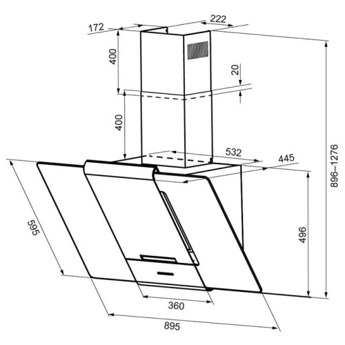 Кухонная вытяжка KRONA TALLI 900 inox black glass 3P