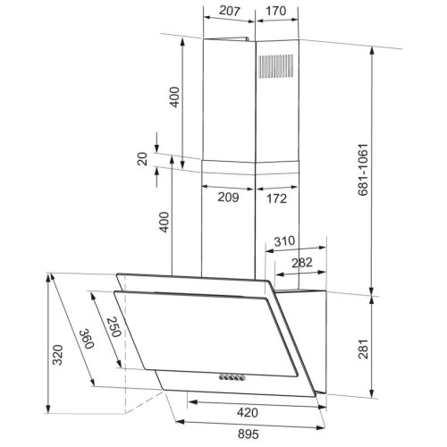 Наклонная вытяжка VENERA выполнена из черного закаленного стекла. Такое стекло обладает высокой прочностью и безопасностью. Ширина встраивания 900 мм обеспечивает увеличенную площадь поглощения испарений, что, в свою очередь, повышает качество защиты фасадов кухонного гарнитура от нагрева. Технология периметрального всасывания повышает долговечность работы двигателя и обеспечивает минимальный уровень шума в диапозоне от 32-47 дБ.