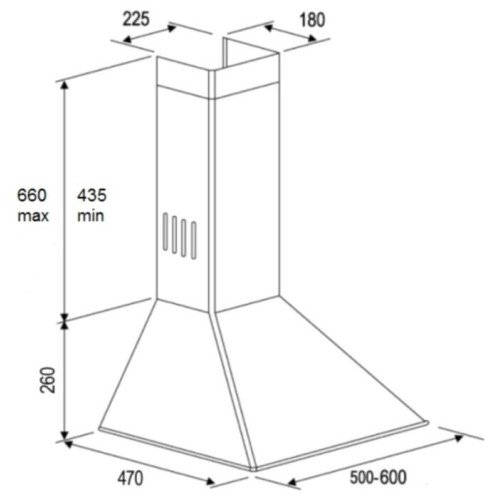 каминная вытяжка монтируется к стене отвод / циркуляция Макс. производительность 800 куб. м/ч ширина для установки 60 см механическое управление тихий двигатель