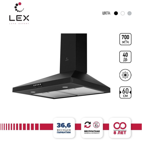 ширина: 59.60 см, максимальная производительность: 700 м?/час, тип освещения: светодиодное