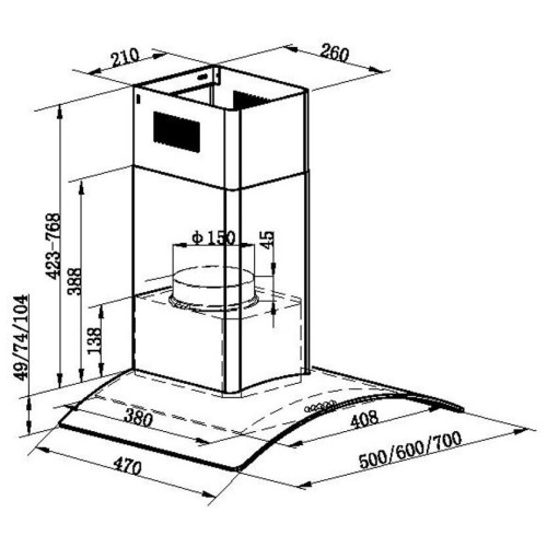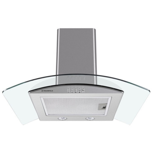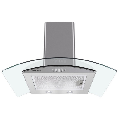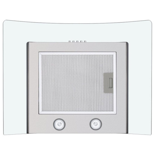 Оригинальная кухонная Т-образная вытяжка шириной 50 см со стеклянной арочной накладной панелью. Монтируется на стену над поверхностью плиты и может функционировать в двух режимах – отвода (при подключении к системе вентиляции) и рециркуляции (при использовании сменного угольного фильтра). Корпус выполнен из матированной нержавеющей стали. Алюминиевый жироулавливающий фильтр установлен на рабочей поверхности. Он легко вынимается из вытяжки и, в случае необходимости, полностью разбирается. Кнопочная система управления расположена на фасаде и позволит вам без труда выбрать один их 3-х режимов работы и включить освещение. Для подсветки варочной поверхности используется 2 светодиодных источника по 1 Вт каждый. Мотор мощностью 100 Вт с максимальной производительностью 600 м 3 /ч позволяет эффективно использовать эту модель на кухне размером до 20 кв.м. Качественная сборка и использование лучших комплектующих позволяет снизить уровень шума до 47 дБ.