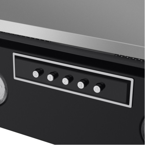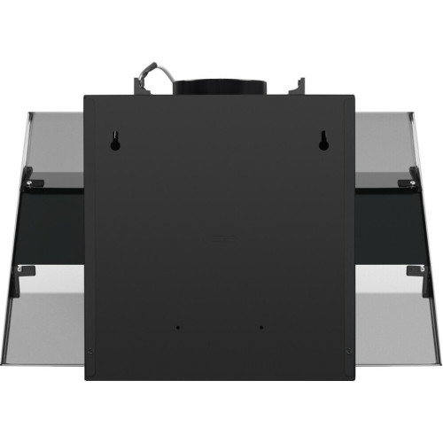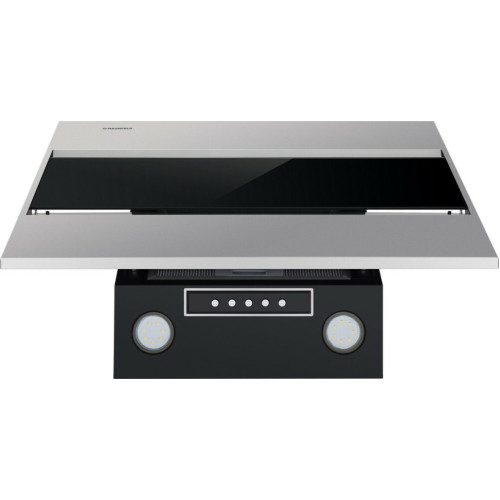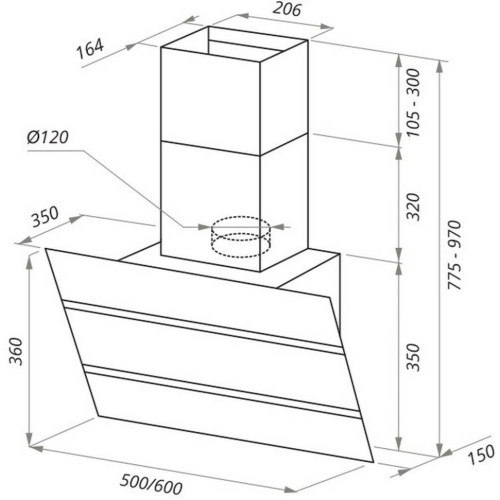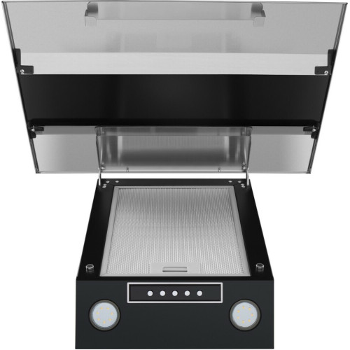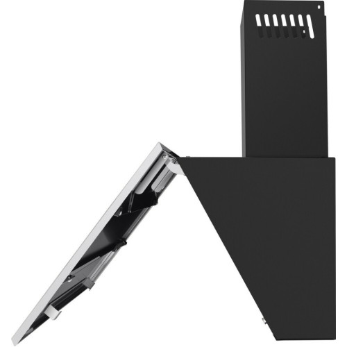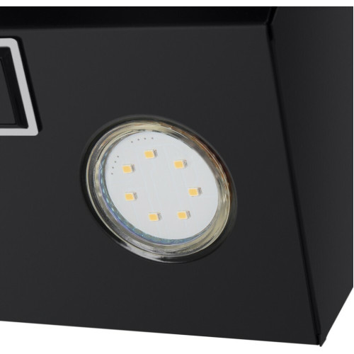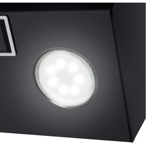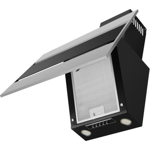Наклонная вытяжка шириной 60 см – оптимальное решение для кухонь площадью до 35 кв.м. Работает в двух режимах – отвода (при подключении к системе вентиляции) и рециркуляции (при использовании сменного угольного фильтра). Корпус выполнен из металла с эмалевым покрытием черного цвета. Откидная панель из матированной нержавеющей стали со вставкой из закаленного черного стекла, скрывает многослойный алюминиевый жироулавливающий фильтр. Он легко снимается и полностью разбирается, что сильно упрощает его чистку. Загрязненный воздух втягивается по периметру откидной панели. Кнопочное управление, расположенное на панели освещения, позволяет выбрать одну из 3-х скоростей работы вентилятора и включить освещение (два светодиодных источника по 3 Вт). Мотор мощностью 115 Вт обеспечивает максимальная производительность в 850 м 3 /ч. Уровень шума вытяжки не превышает 51 дБ.