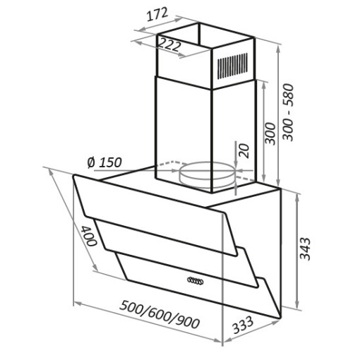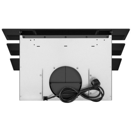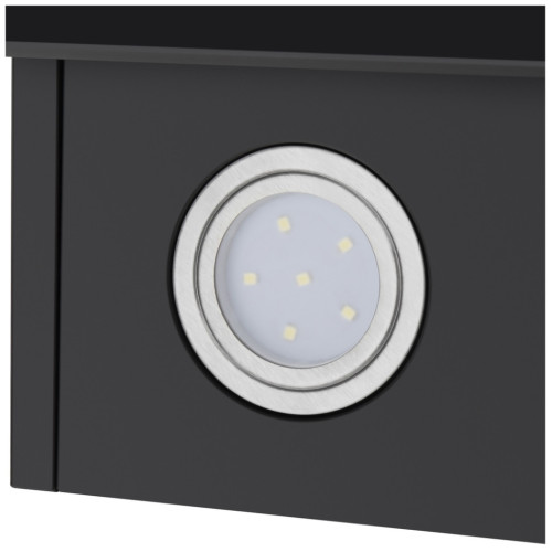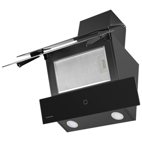 Стильная наклонная вытяжка черного цвета шириной всего 50 см прекрасно подойдет для кухни площадью до 20 кв.м. Монтируется на стену над поверхностью плиты и работает в двух режимах – отвода (при подключении к системе вентиляции) и рециркуляции (при использовании сменного угольного фильтра). Корпус выполнен из эмалированной стали. Д изайнерский фасад представляет собой каскад из 3-х сверхпрочных закаленных стекол в цвет корпуса. Благодаря такому расположению панелей принцип периметрического втягивания воздуха действует особенно эффективно. Многослойный алюминиевый жироулавливающий фильтр, скрытый за двумя верхними откидными панелями, легко снимается и полностью разбирается, что сильно упрощает чистку. Сенсорное управление с дисплеем располагается на нижней панели фасада. Можно включить: одну из 3-х скоростей таймер (на 9 мин) свет (2 светодиодных элемента по 1 Вт) Мотор мощностью 102 Вт с максимальной производительностью 700 м 3 /ч. Уровень шума даже на самой высокой скорости не превышает 53 дБ.