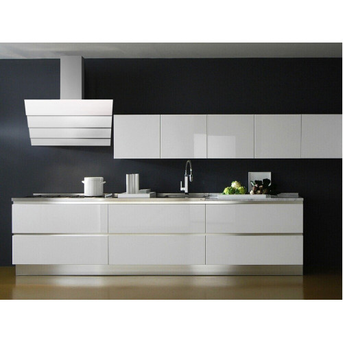 Стильная, дизайнерская вытяжка наклонного типа с богатым набором функций, за глянцевым каскадом из четырех стекол скрыт алюминиевый (жироулавливающий) фильтр обеспечивающий надежное очищение воздуха от копоти, жира и запахов. Вытяжка выполнена из высококачественной стали и отделана прочным закаленным стеклом, позволяющим комфортно очищать его поверхность. Даже при активной эксплуатации вытяжки ее внешний вид не поддается каким-либо изменениям. Вытяжка оснащена удобным сенсорным управлением, 4-мя скоростями и цифровым дисплеем. Жировой коллектор надежно задерживает от копоть, жир и запахи. Временной таймер позволяет выполнять проветривание помещения и автоматически выключиться через заданное время. Блокировка сенсорного управления необходимая функция при мытье. Полная потребляемая мощность составляет 270 Вт, а максимальная производительность 1050 м3/ч, что позволяет работать на кухнях большой площади и эффективно очищать воздух. Модель оснащена ярким галогенным освещением (2*20), света которого достаточно для комфортного приготовления пищи на плите. Наклонная вытяжка монтируется на стену над поверхностью плиты.