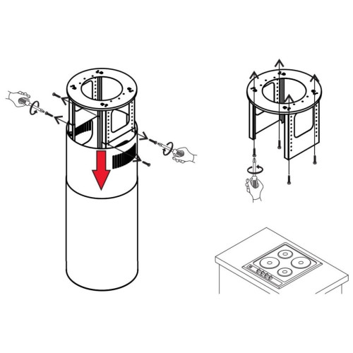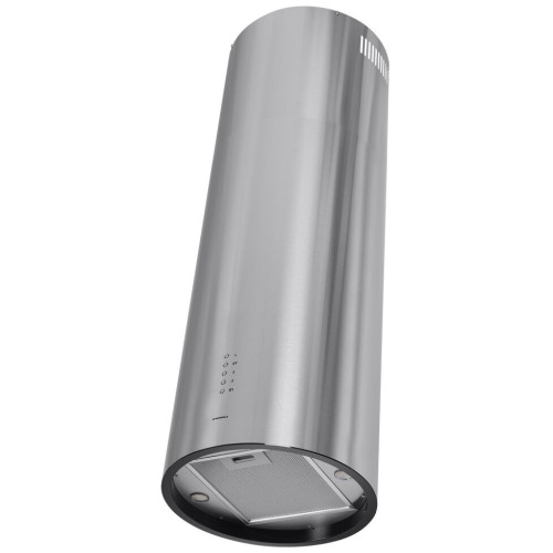 Необычная вытяжка благодаря стильному исполнению и техническим характеристикам идеально впишется в интерьер любой современной кухни. Можно устанавливать на островной кухне. Эта модель работает в двух режимах: отвода (при подключении к системе общедомовой вентиляции) и рециркуляции (требуется установка сменного угольного фильтра). Корпус цилиндрической формы, выполненный из нержавеющей стали с термостойким покрытием, крепится на потолок над поверхностью плиты. В нижней части вытяжки находится алюминиевый многослойный жироулавливающий фильтр. Он легко вынимается и полностью разбирается, что сильно упрощает чистку. Электронное управление с подсветкой позволит выбрать один из 4-х режимов работы вентилятора, выставить таймер и включить LED освещение. Мощность мотора составляет 260 Вт. Максимальная производительность вытяжки достигает 1000 м 3 /ч, что позволяет использовать ее на очень большой кухне. Тихая работа и высокая эффективность вытяжки обеспечиваются периметральным принципом втягивания воздуха и особой конструкцией. Уровень шума при самой высокой скорости работы всего 52 дБ.