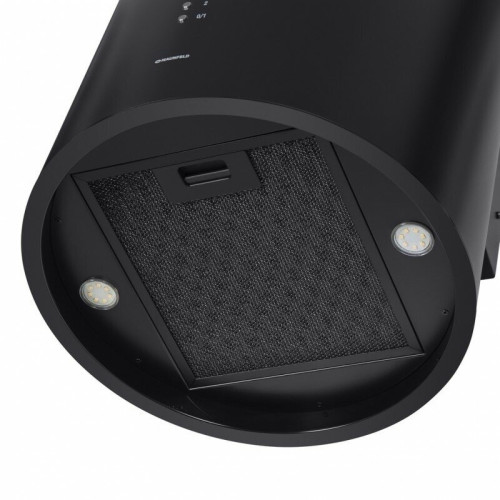 Необычная вытяжка благодаря стильному исполнению и техническим характеристикам идеально впишется в интерьер любой современной кухни. Можно устанавливать на островной кухне. Эта модель работает в двух режимах: отвода (при подключении к системе общедомовой вентиляции) и рециркуляции (требуется установка сменного угольного фильтра). Корпус цилиндрической формы, выполненный из нержавеющей стали с термостойким покрытием, крепится на потолок над поверхностью плиты. В нижней части вытяжки находится алюминиевый многослойный жироулавливающий фильтр. Он легко вынимается и полностью разбирается, что сильно упрощает чистку. Электронное управление с подсветкой позволит выбрать один из 4-х режимов работы вентилятора, выставить таймер и включить LED освещение. Мощность мотора составляет 260 Вт. Максимальная производительность вытяжки достигает 1000 м 3 /ч, что позволяет использовать ее на очень большой кухне. Тихая работа и высокая эффективность вытяжки обеспечиваются периметральным принципом втягивания воздуха и особой конструкцией. Уровень шума при самой высокой скорости работы всего 52 дБ.