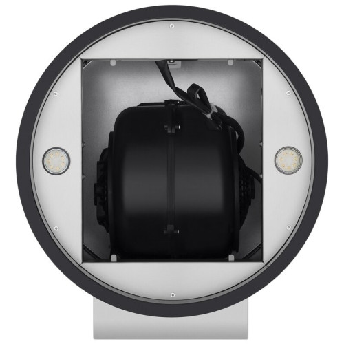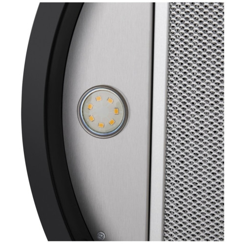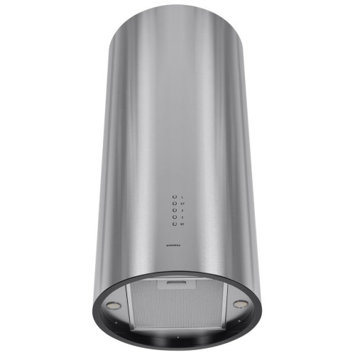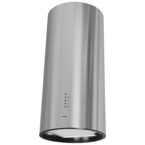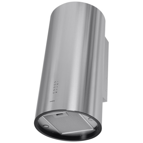 Уникальная вытяжка благодаря неординарному исполнению подчеркнет неповторимый дизайн вашей большой кухни. В модели реализованы две возможности эксплуатации: режим прямого отвода загрязненного воздуха в вентиляционную шахту или режим рециркуляции воздушных масс и их очистки с помощью сменных угольных фильтров. Корпус цилиндрической формы , сделанный из матированной нержавеющей стали, монтируется на стену над варочной поверхностью. Нижний торец вытяжки имеет черную акцентную окантовку. Специальный многослойный жироулавливающий фильтр легко снимается и полностью разбирается, что сильно упрощает его чистку. Электронное управление с подсветкой позволит выбрать один из 4-х режимов работы вентилятора, установить таймер и включить 2 светодиодные лампочки, расположенные по бокам от фильтра. Мощность мотора составляет 260 Вт. Максимальная производительность вытяжки достигает 1000 м 3 /ч. Тихая работа и высокая эффективность вытяжки обеспечиваются периметральным принципом втягивания воздуха и особой конструкцией. Уровень шума при самой высокой скорости работы всего 52 Дб.